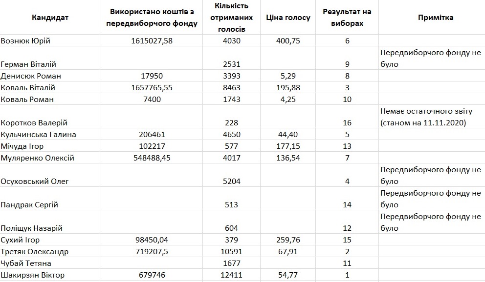 Скільки офіційно витратили коштів зі своїх передвиборчих фондів партії на виборах до Рівненської міської ради? А скільки кандидати на посаду Рівненського міського голови? Якою вийшла офіційна ціна голосу?